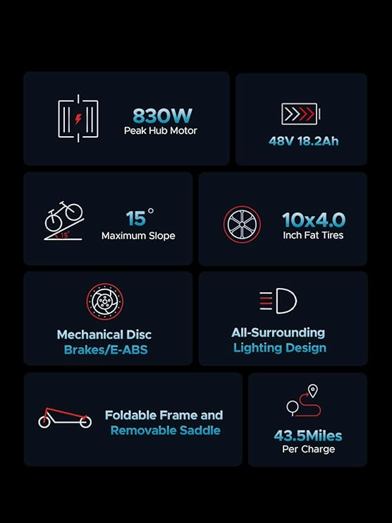 - ๐ด๐๐ซ๐ข๐ฉ๐ฅ๐ ๐๐ก๐จ๐๐ค๐ฌ ๐๐ฎ๐ฌ๐ฉ๐๐ง๐ฌ๐ข๐จ๐ง& ๐๐ฎ๐ซ๐ง ๐๐ข๐ ๐ง๐๐ฅ ๐๐ง๐๐ข๐๐๐ญ๐จ๐ซ๏ผFront and rear dual shock absorber system plus seat spring damping can absorb most of the bumps and vibrations during riding, 10*4.0 inch big fat tires, adapt to changing weather and bumpy terrain, even on the bumpy trails can be driven smoothly, plus the design of turn signals improves riding comfort and safety.