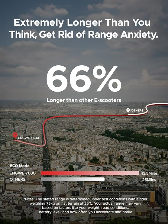- ๐ด๐๐๐ ๐๐.๐๐๐ก ๐๐๐ญ๐ญ๐๐ซ๐ฒ & 43 ๐๐ข๐ฅ๐๐ฌ ๐๐๐ฑ ๐๐๐ง๐ ๐๏ผ54.6V 2A charger of electric commuter bike for adults for 7-8 hours of fast charging for up to 43 miles of range (In 1st gear pure electric mode) . Great for urban commuting, urban leisure activities. And please note that the aileage range varies according to road condition, riding mode, weather, rider's weight, battery power value etc.